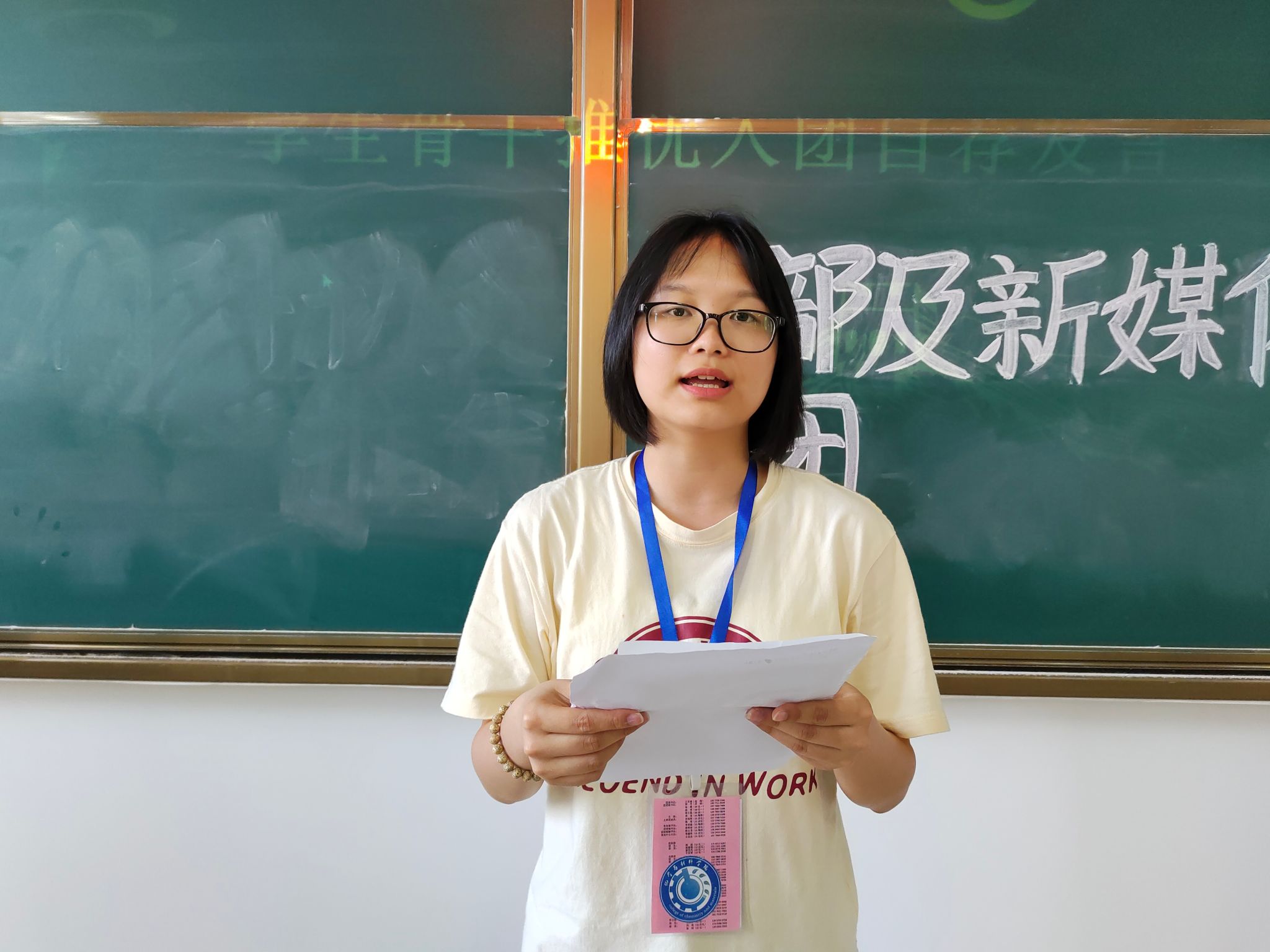 会议伊始,由主持人向参会人员说明本次会议的主要流程、投票规则及注意事项,并阐明了本次推优入团会议的意义。随后,每位自荐者上台进行2-3分钟的发言,他们总结自身的优点与不足,并表示在今后会发扬优点、改正缺点,立志成为一名光荣的共青团员。每位自荐者在发言时表现出自己加入中国共产主义青年团的强烈愿望,希望以自己的实际行动为团组织事业添砖加瓦,为团旗增辉增色。最后,参会人员根据自荐者平时的表现及发言进行匿名投票,工作人员现场唱票并公布投票结果,整个过程井然有序,做到公平公正公开。