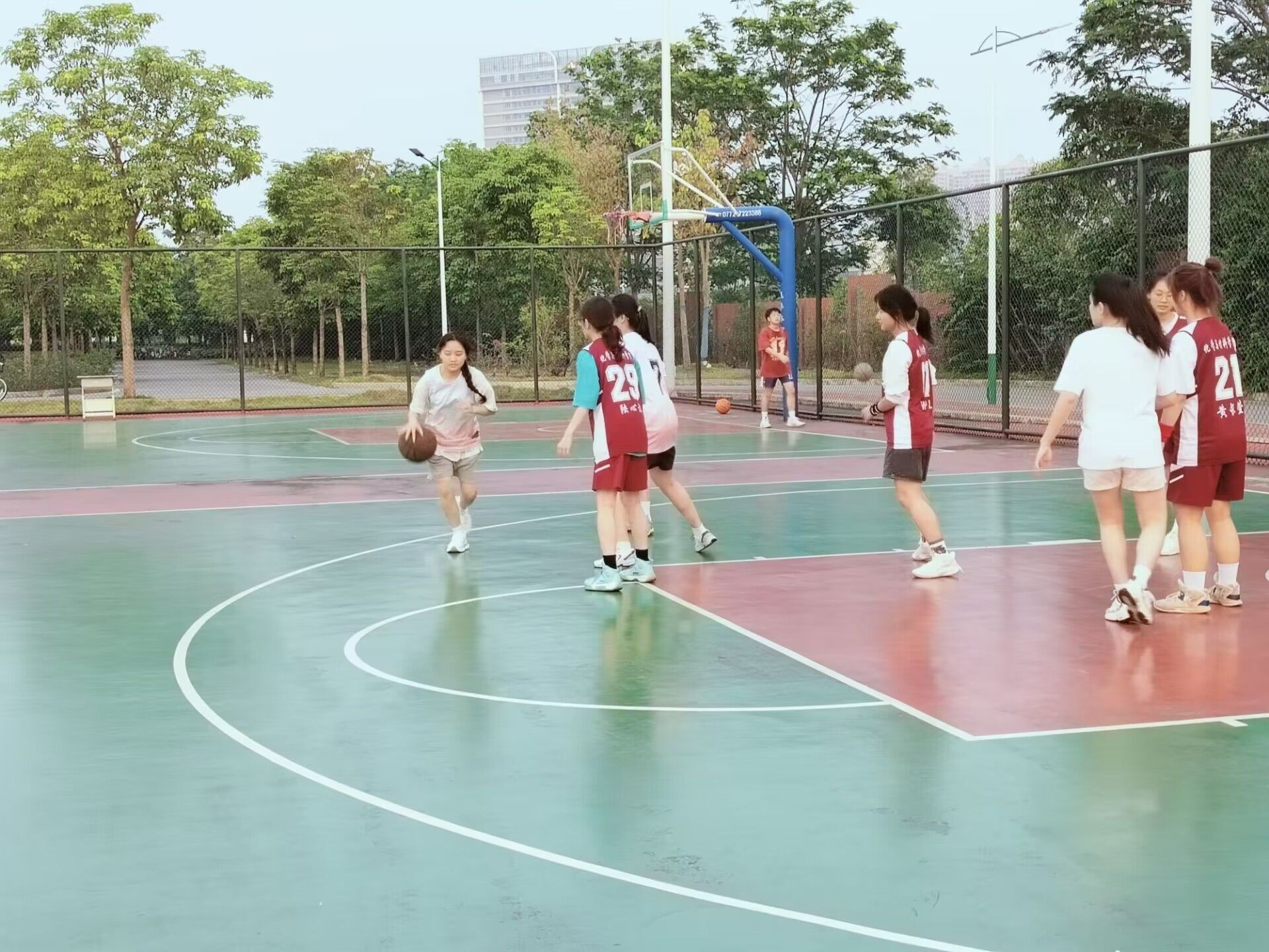 为了丰富同学们的课余生活,激发同学们的运动热情,必威西汉姆联特此举办“烧杯”杯篮球比赛。经过了初赛角逐,23应化2班女子队顺利进入半决赛,4月24日下午,23应化2班女子队与A3组女子队在松园篮球场进行了一场激烈的篮球比赛。全班同学一起为场上的同学加油助威。