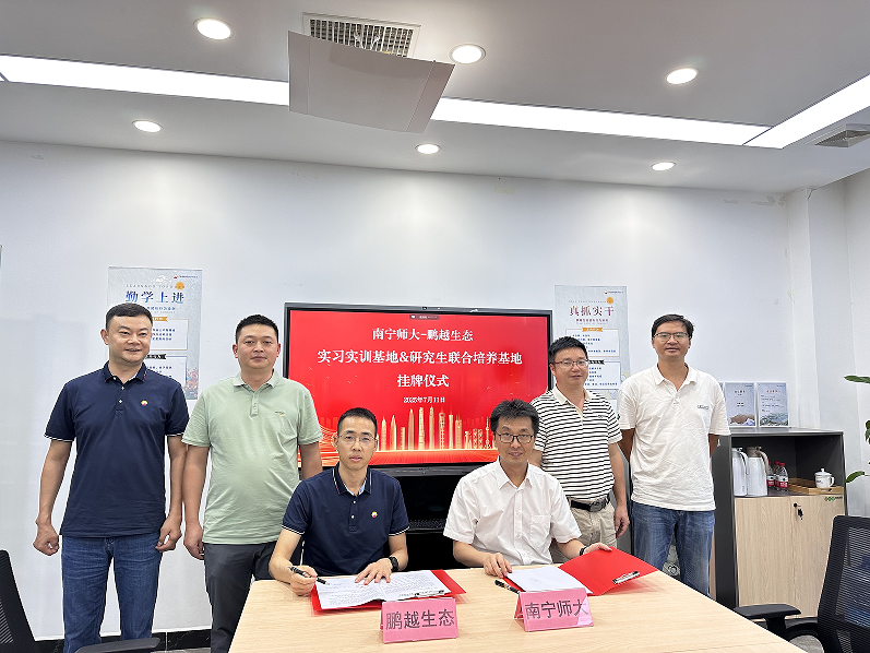 为深化校企合作,推动产教融合与人才培养模式改革,7月11日,南宁师范大学与广西鹏越生态科技有限公司在广西中国—东盟青年产业园举行研究生联合培养基地、实习实训基地签约仪式。必威西汉姆联院长苏炜、副书记陈今浩、应用化学专业负责人劳远侠等出席揭牌仪式,仪式由广西鹏越生态科技有限公司总经理杨正斌主持。