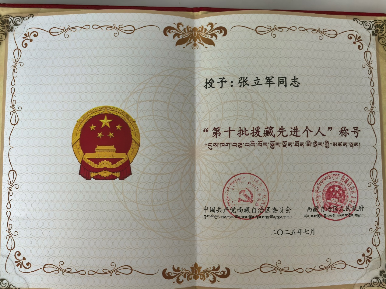 我院2003级化学教育专业张立军,毕业后回到家乡做一名中学科学教师,现为浙江省台州市椒江区章安学校副校长,2022年7月,张立军校友报名参加国家第十批援藏计划,于2024年2月进藏,担任西藏那曲市嘉黎县中学副校长。在藏期间,以实干精神在教师培养、资源整合、教学改革、文化交融等方面取得显著成效,让嘉黎县中学青年教师教学能力显著提升,让偏远乡村学生享受更优质教育资源,让台嘉两地教育实现深度融合,为嘉黎县教育高质量发展作出突出贡献,获得西藏自治区党委政府授予以的第十批援藏先进个人称号。