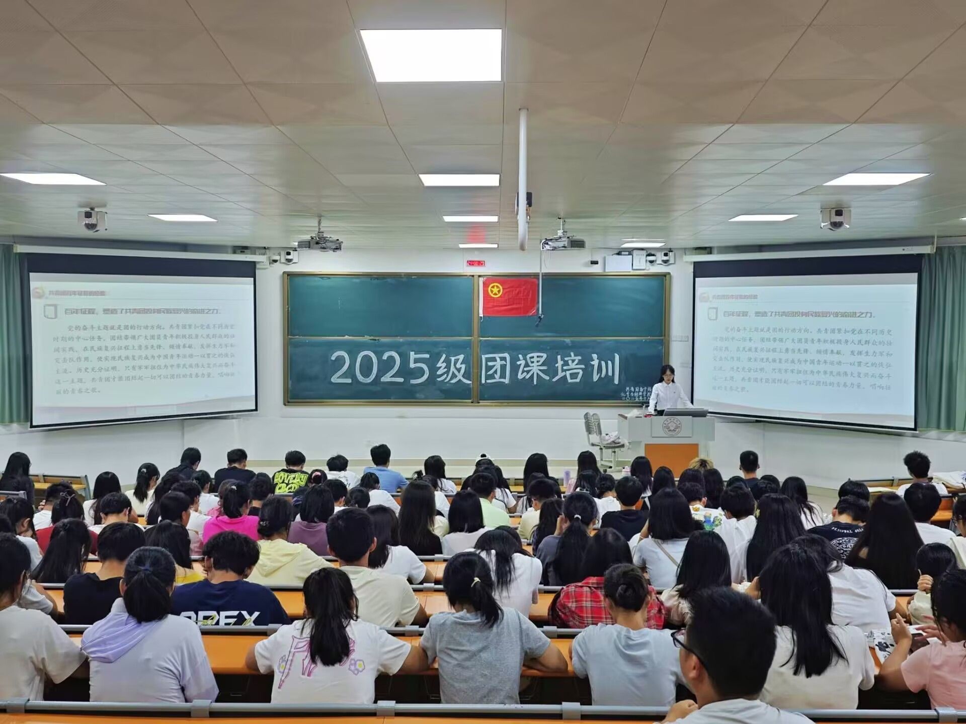 为引导青年学生坚定理想信念、增强组织认同,自觉将个人成长融入时代发展大局,必威西汉姆联于2025年10月11日晚在武鸣校区一号教学楼115教室开展了2025级团课培训,预备党员梁顺佳、陈彦蓉同学主讲,2025级全体新生参与培训。